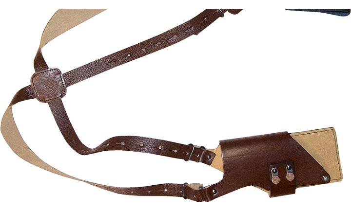 Подвесная система для патронташа изготовлена из натуральной кожи. Надежно держит патронташ, облегчает носку полного патронташа на дальние расстояния, незаменим при беге. В производстве используется итальянская фурнитура, которая практически не дает бликов. Раскрой производится на специальном оборудовании, что гарантирует высокое качество изделий. Для производства используется элитная кожа натурального сквозного прокраса. Она изготовлена по старинной технологии, не боится влаги, ружейного масла и солнечных лучей. Изделия, выполненные из этой кожи, будут служить долгие годы, сохраняя свой первозданный вид.